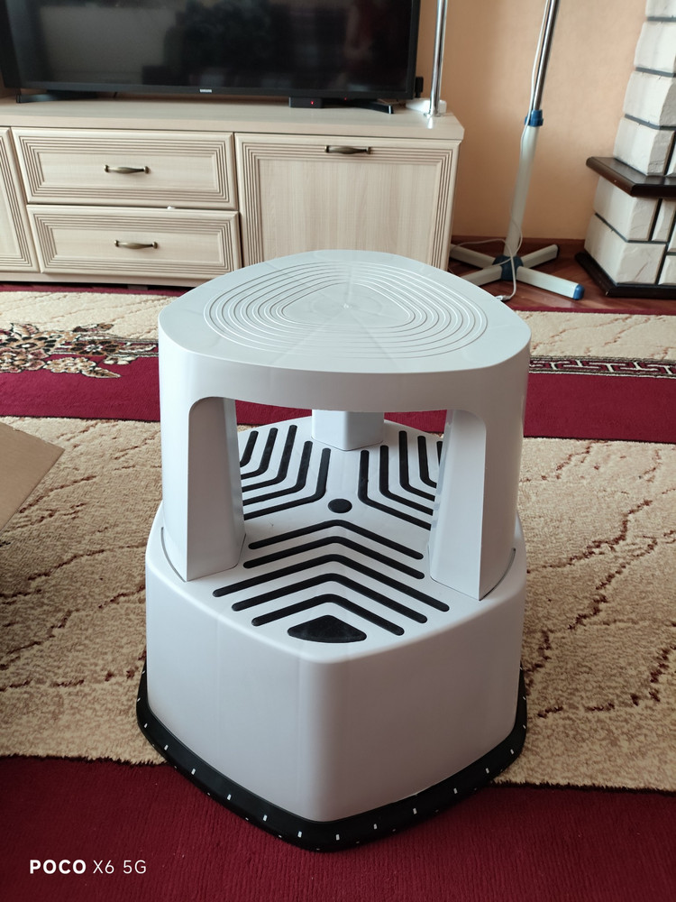 Отличный табурет! Уже второй такой беру. Удобно сидеть и в быту выручает (например лампочку поменять).